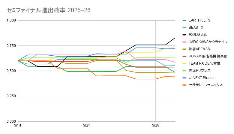 2025年9月30日までのファイナル優勝確率推移は次の通りです。